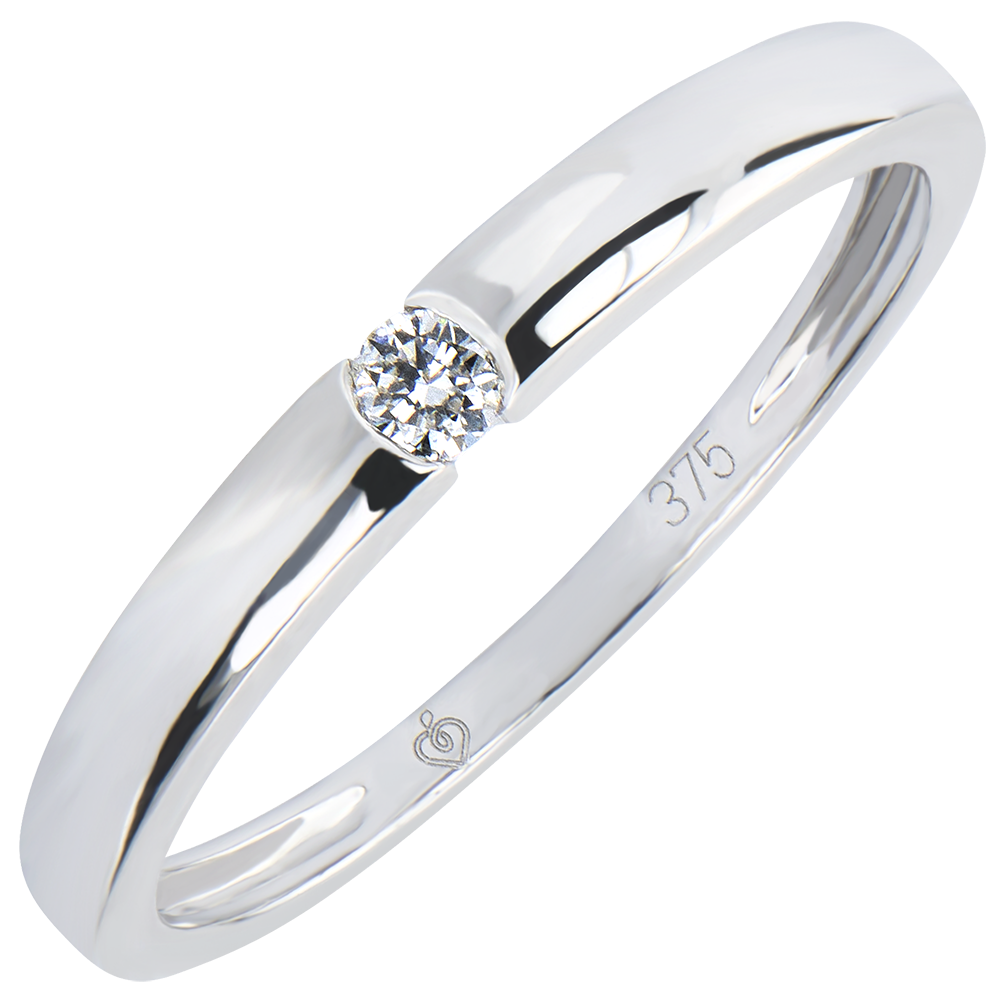 Un anillo de oro blanco puro y sobrio, donde yace un diamante simbolizando la eternidad.