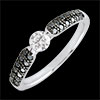 Un sublime solitario acompañado. Un anillo muy moderno que lleva diamantes negros y oro blanco.