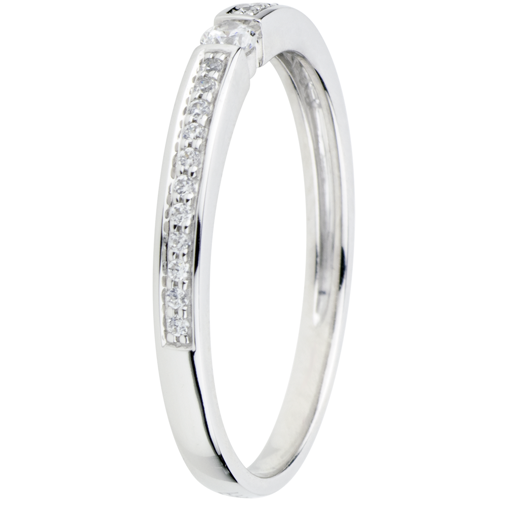 23 diamantes: 0.14 quilates - Oro blanco (9 quilates= 375/1000): 1.5 g.