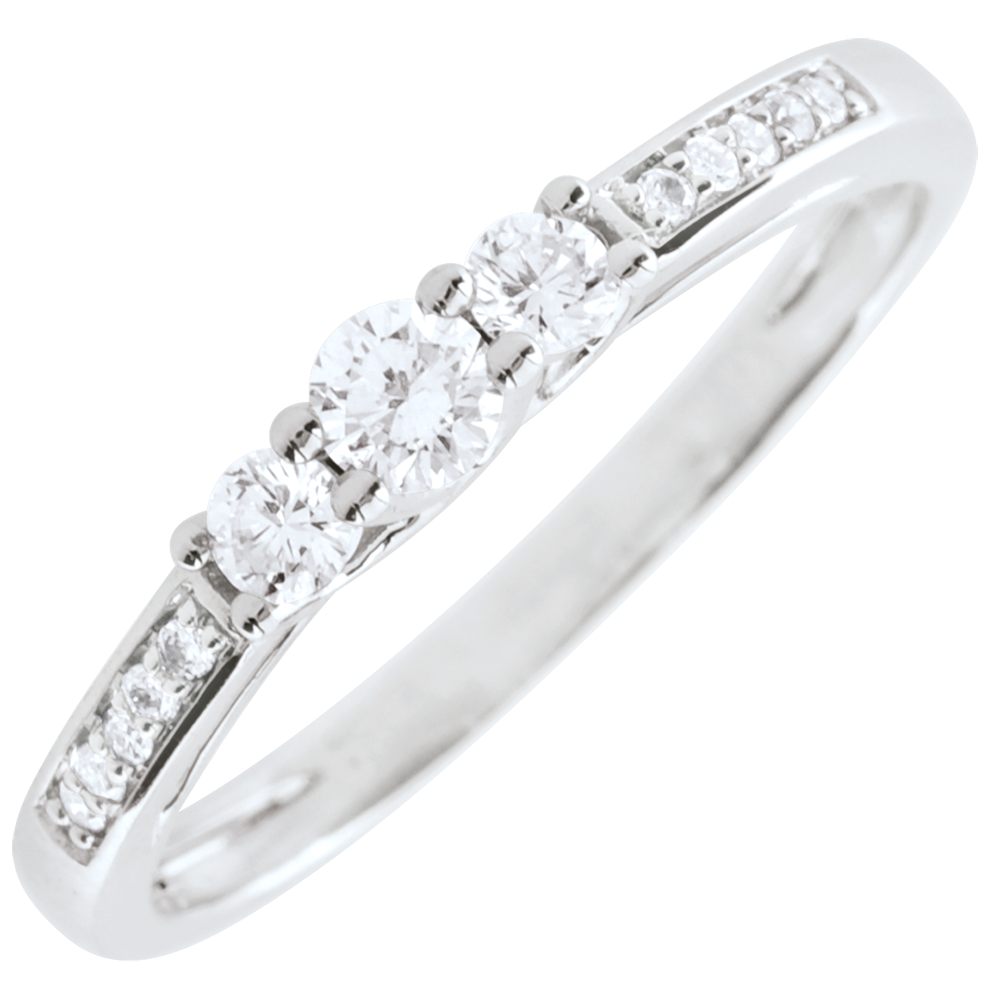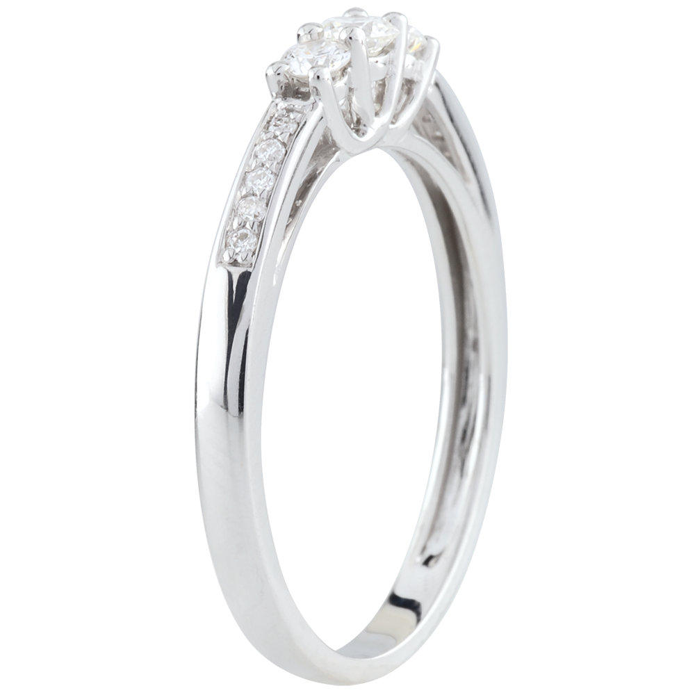 Montura plena de diamantes de talla brillante engalanan una trilogía de diamantes.