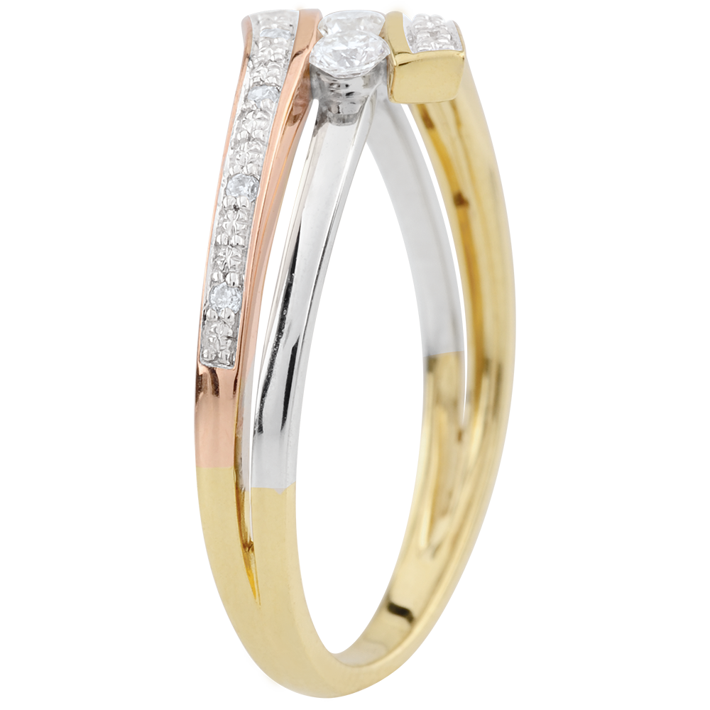 Anillo Trilogía Nido Precioso - Odinia - tres oros, oro blanco, amarillo y rosa 9 quilates