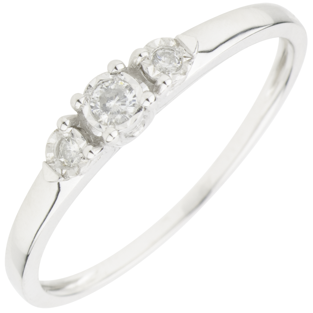 Una montura de oro blanco coronada por una trilogía de diamantes delicadamente rodeados de oro blanco.