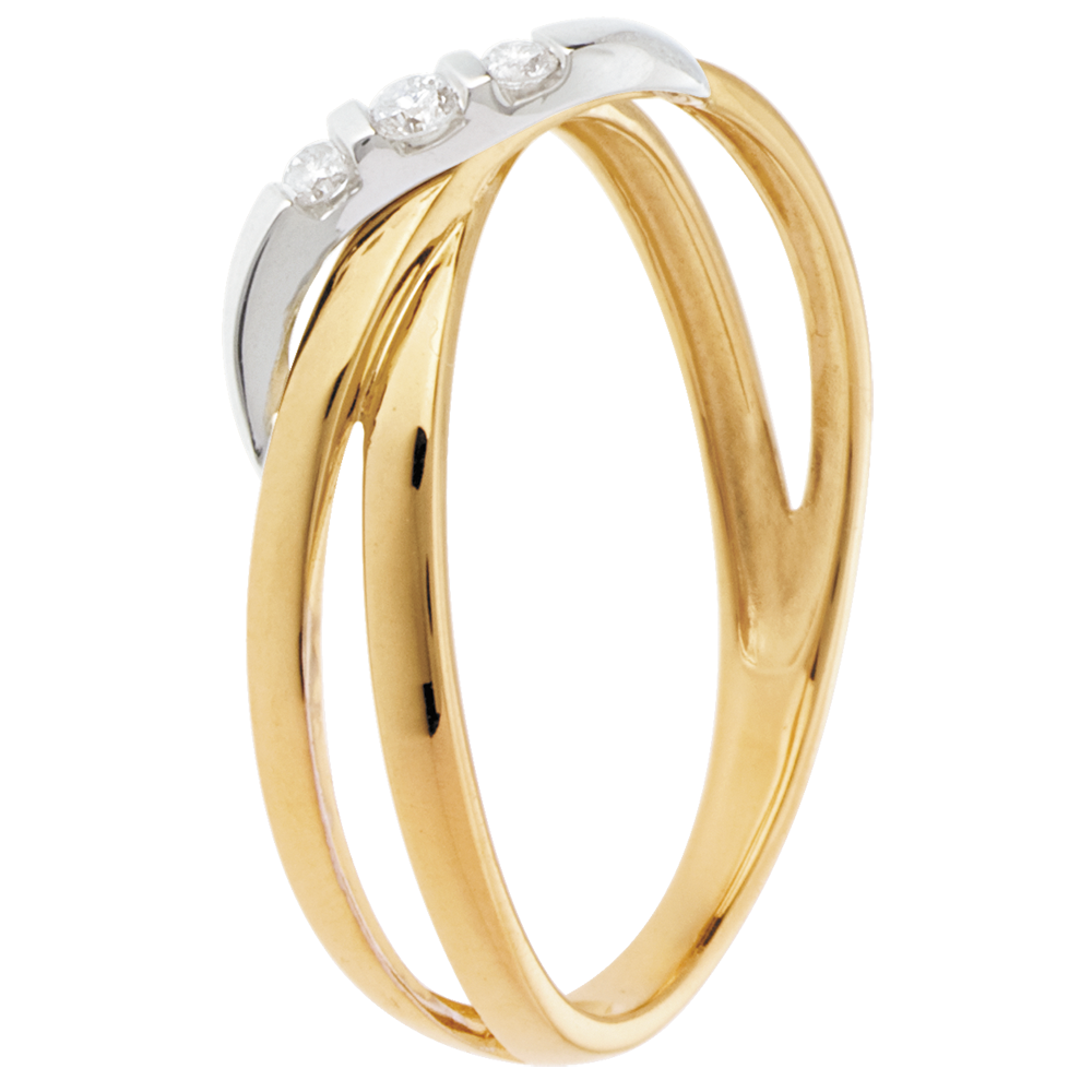 Anillo Triología Aros - oro amarillo y oro blanco 18 quilates - 3 diamantes