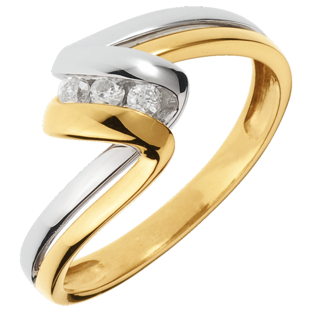 Anillo trilogía Nido Precioso - Tiempo infinito - oro amarillo y blanco 18 quilates - 3 diamamantes
