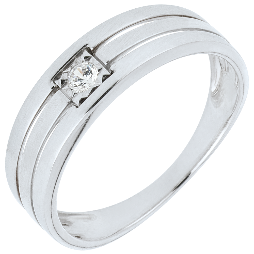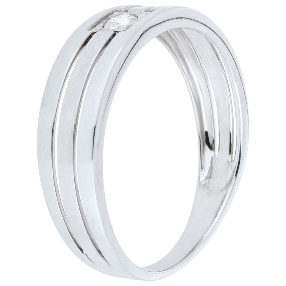 Un diamante solitario engastado en un marco de oro, el cuadro perfecto con tres filas de oro para aportarle un toque de modernidad y elegancia.
