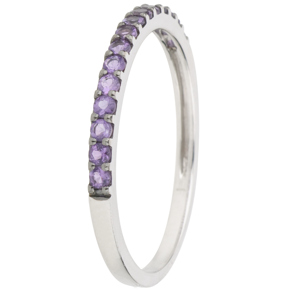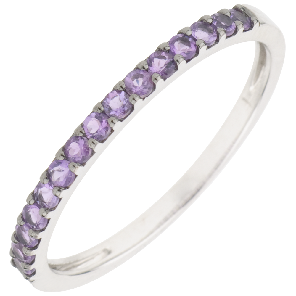 Anillo Aves del Paraíso - una fila - oro blanco 9 quilates y amatista