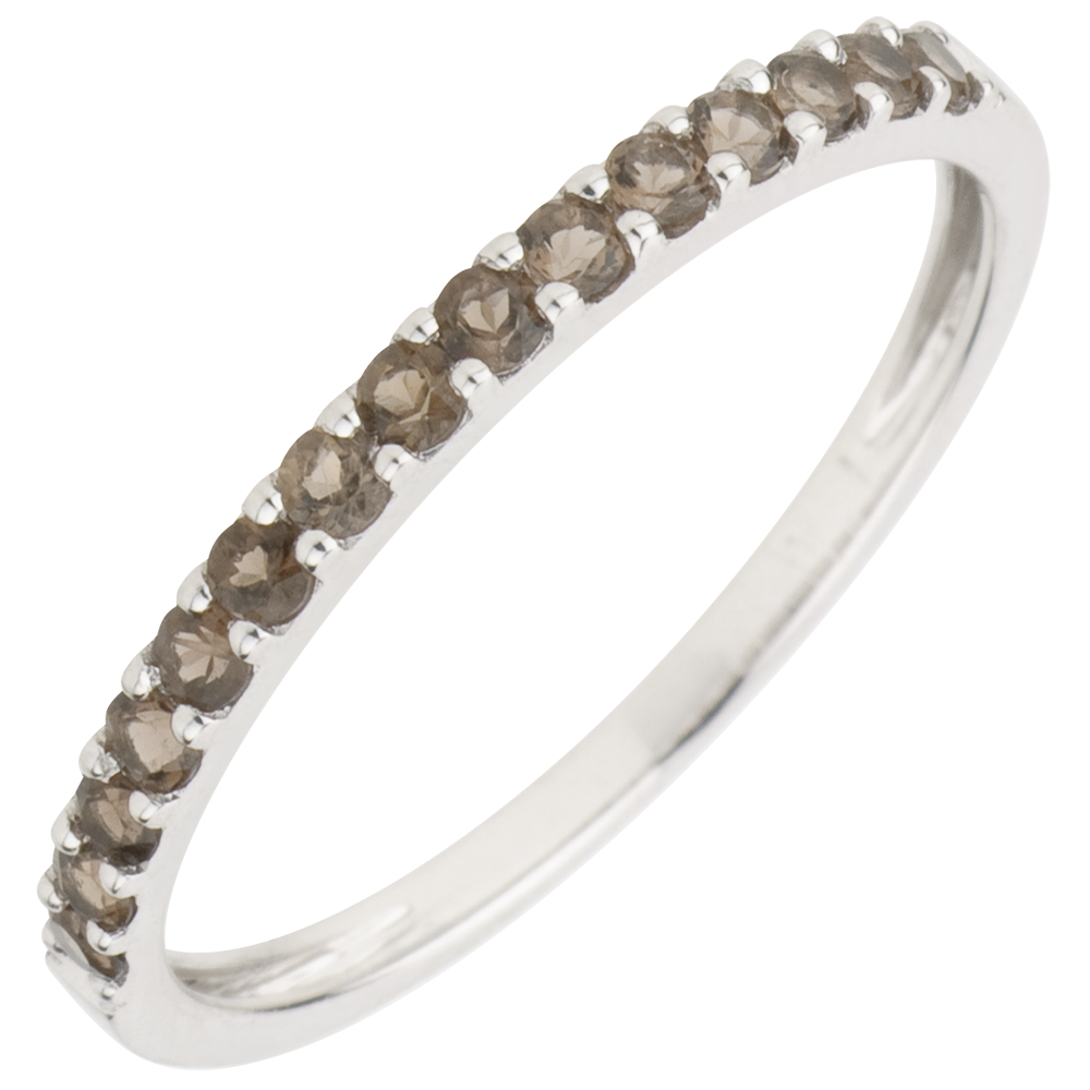 Anillo Aves del Paraíso - una fila - oro blanco 9 quilates y cuarzo ahumado