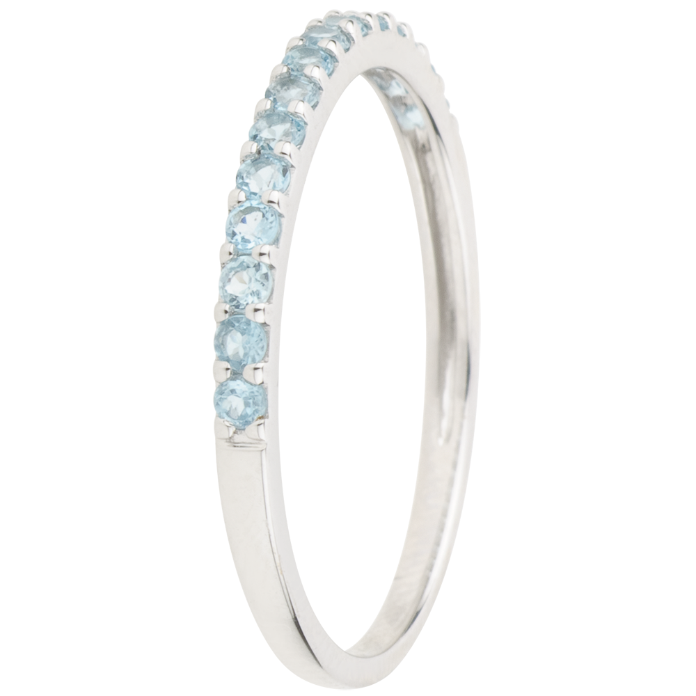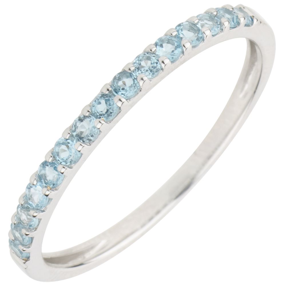 Anillo Aves del Paraíso - una fila - oro blanco 9 quilates y topacio azul