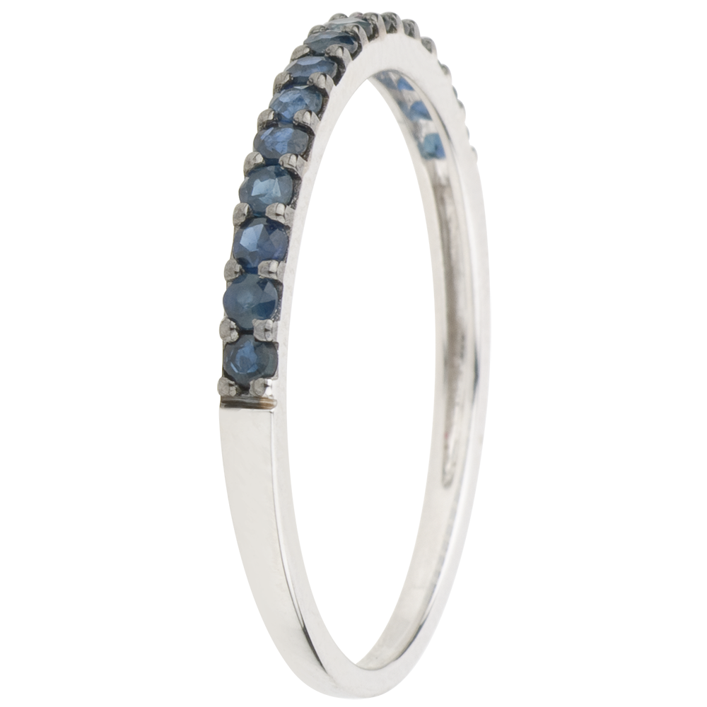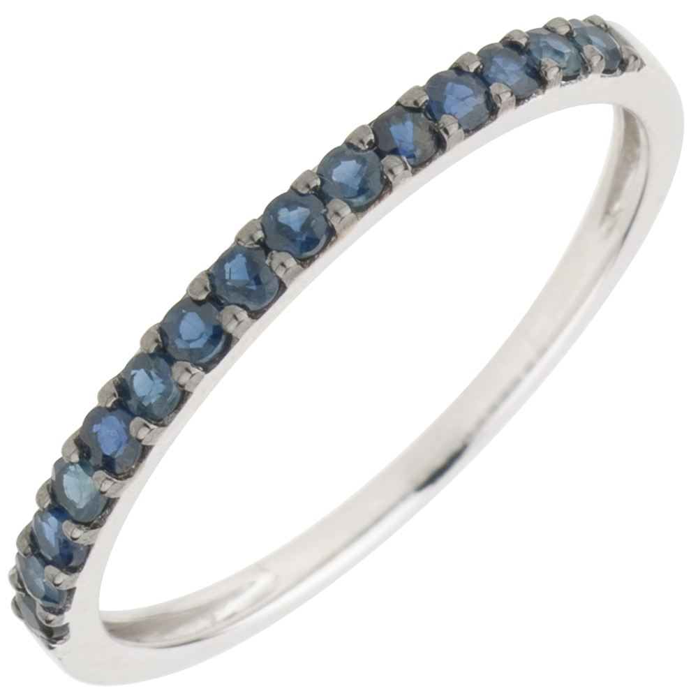 Anillo Aves del Paraíso - una fila - oro blanco 9 quilates y zafiro azul