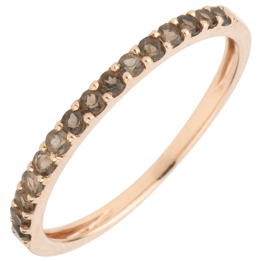 Anillo Aves del Paraíso - una fila - oro rosa 9 quilates y cuarzo ahumado