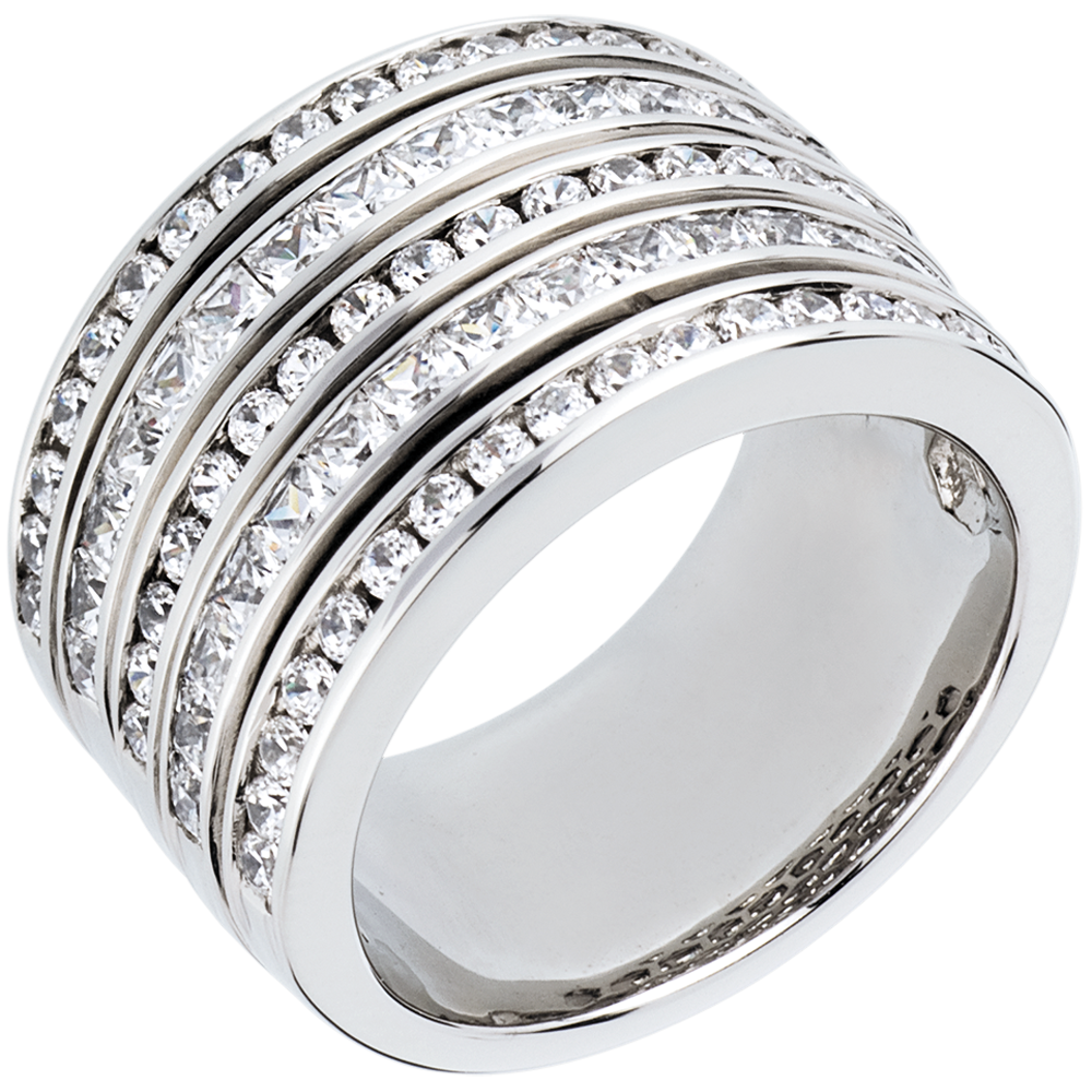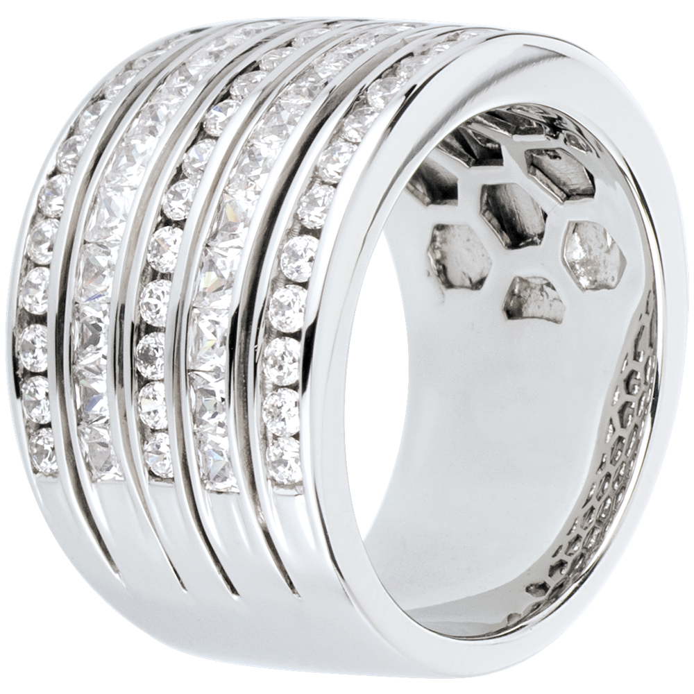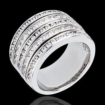 Una montura vertiginosa con estilo, compuesta por cinco filas semi pavimentadas de diamantes. Un anillo de excepción.