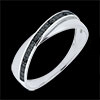 Anillo de oro entrelazado con uno de diamantes negros en talla brillante.