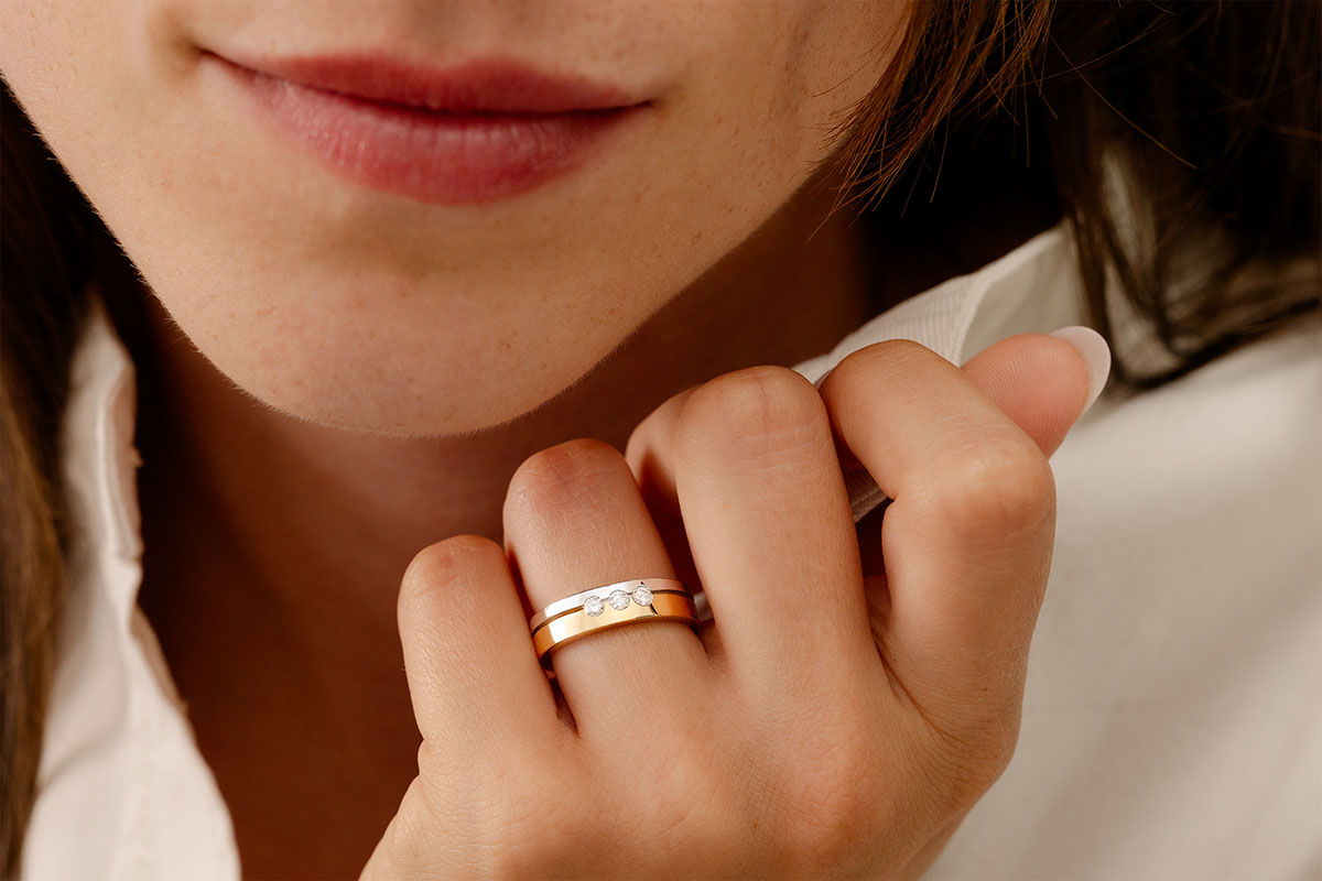 Un conjunto es una composición de pequeños diamantes reunidos para crear el efecto de una piedra más grande, con un brillo multiplicado y una excelente relación calidad-precio.