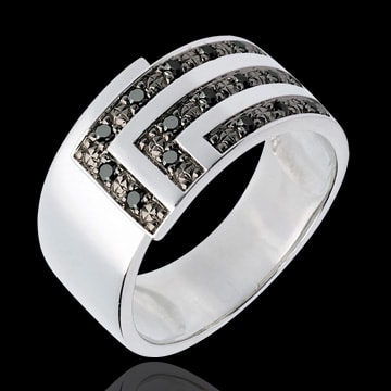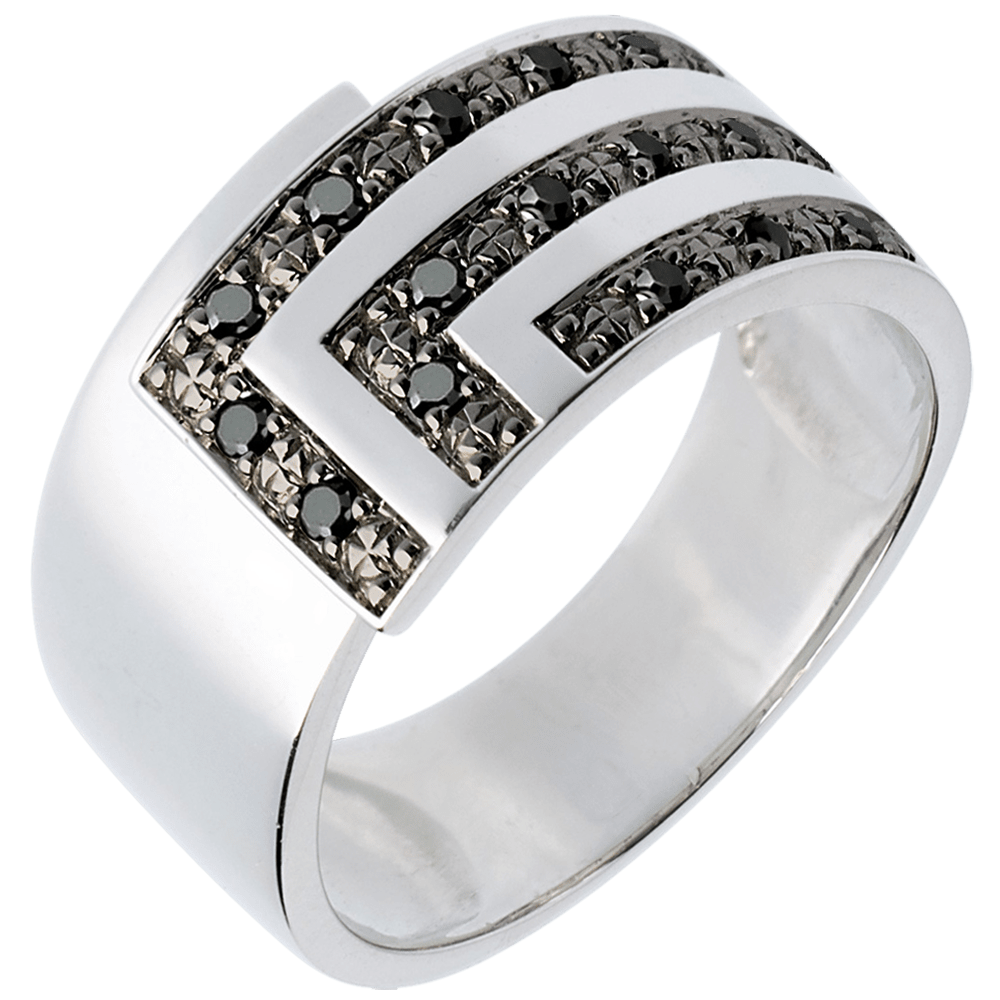 Anillo cartabón - oro blanco 18 quilates y diamantes negros