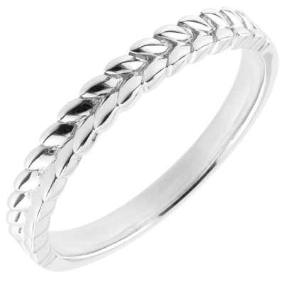 Un aro compuesto de hojas de oro entrelazadas sobre la mitad del anillo. Perfecto como alianza original y refinada, o un anillo que puede combinar con otras sortijas.