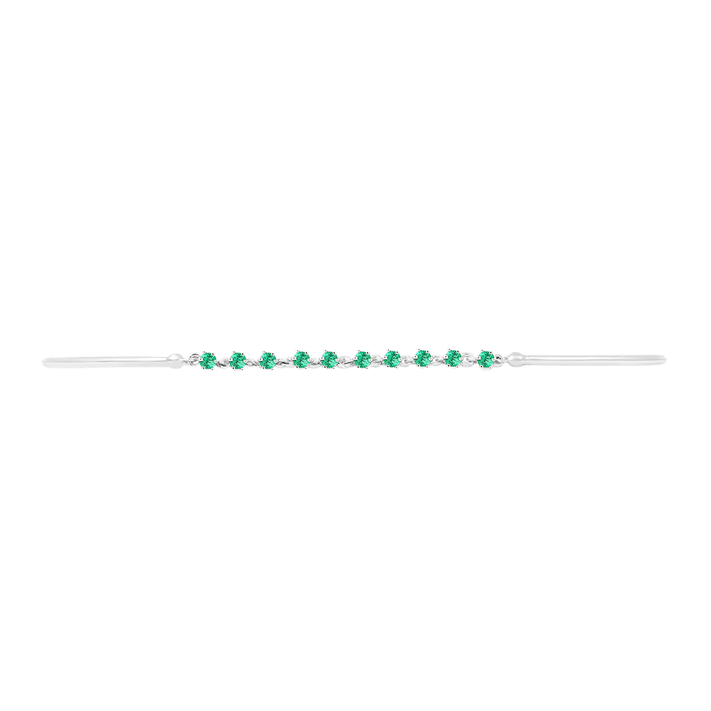Gracile es una pulsera de brazalete en oro blanco adornada con finas esmeraldas. Su delicada cadena y diseño limpio la convierten en una pieza esencial para un toque de finura y elegancia.