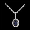 Un zafiro coroando por oro amarillo y diamantes. Colgante largo clásico y fino.