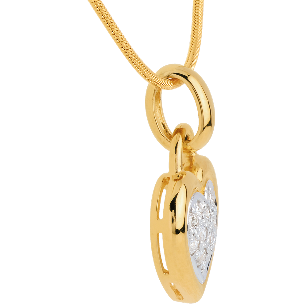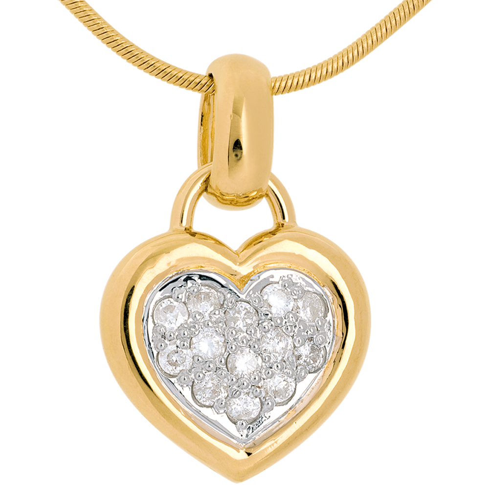 Colgante corazón empedrado oro amarillo - 0.26 quilates - 13 diamantes