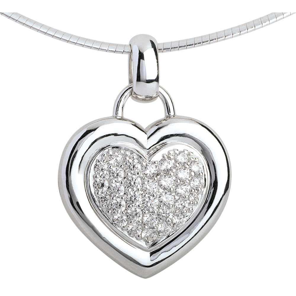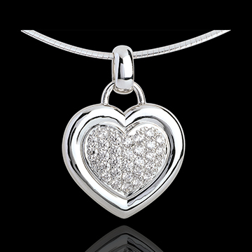 Colgante corazón empedrado oro blanco - 0.75 quilates - 31 diamantes