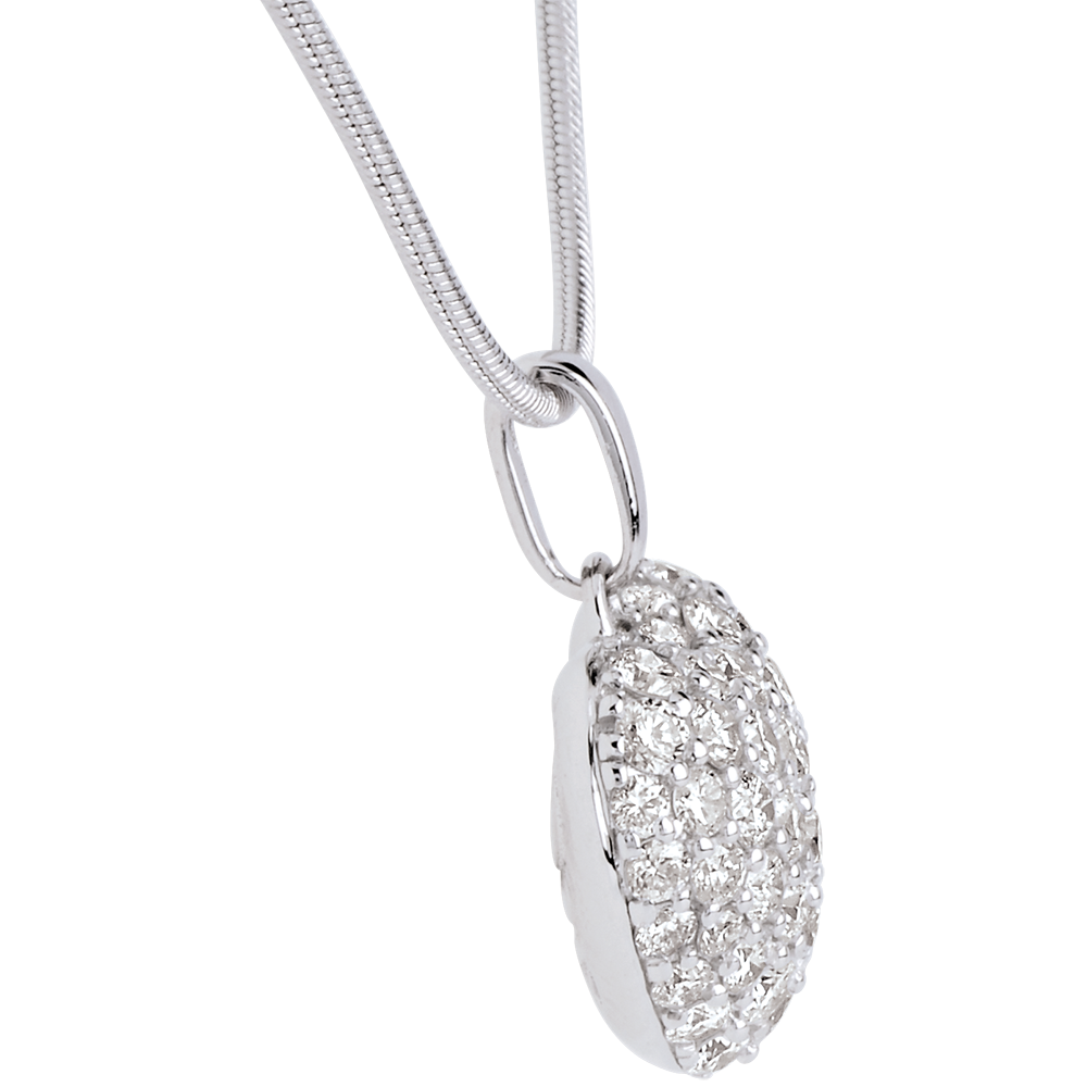 Colgante corazón empedrado oro blanco y campanita 1.04 quilates - 50 diamantes
