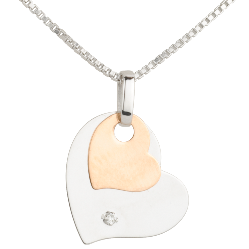 Colgante Corazones Modernos - oro blanco y oro rosa 9 quilates