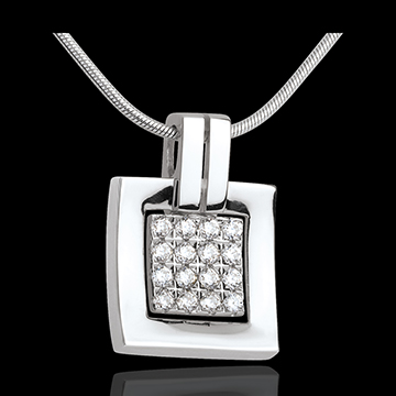 16 diamantes: 0.24 quilates - Oro blanco (18 quilates= 750/-): 2.5 g.