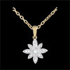 Una Flor de oro blanco llena de diamantes con destellos como las estrellas, cuelga de una cadena de oro amarillo. Para dar un toque de modernidad, una cadena de oro blanco.