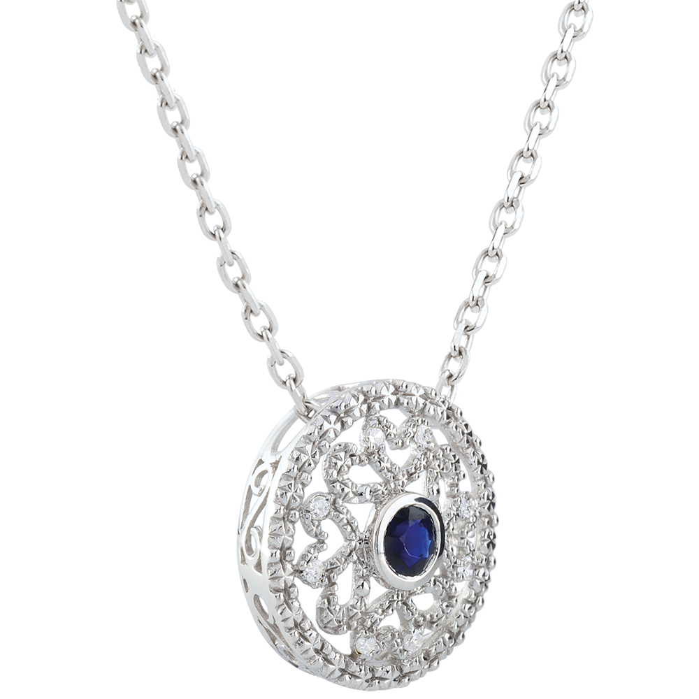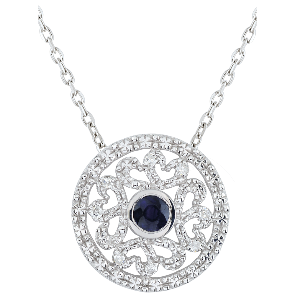 Colgante Kiona - oro blanco 9 quilates - diamantes y zafiro