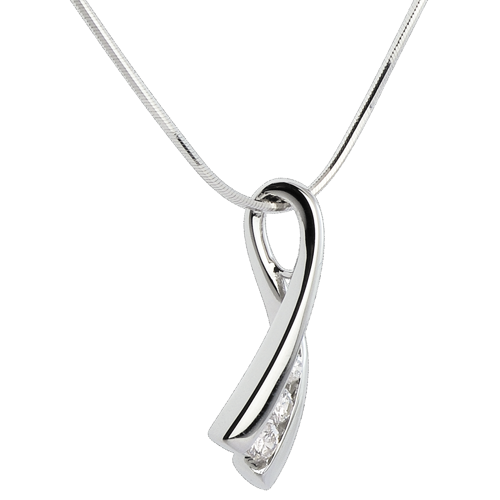 Trilogía de diamantes con una cinta de Oro Blanco sobre una cadena, crea la ilusión óptica de un nudo.Cadena no incluída.