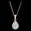 El brillo de un colgante de pavé de diamantes en forma de pera, coronado con un halo de diamante. Un colgante de oro blanco y amarillo fino y sutil, impregnado de una elegancia atemporal.