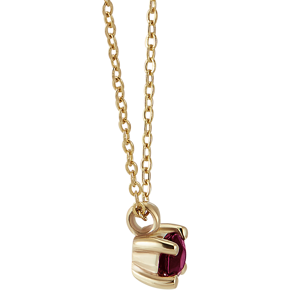 La elegancia y la esencia de un rubí sobre una cadena de oro amarillo. Una joya clásica y atemporal con un toque de color.