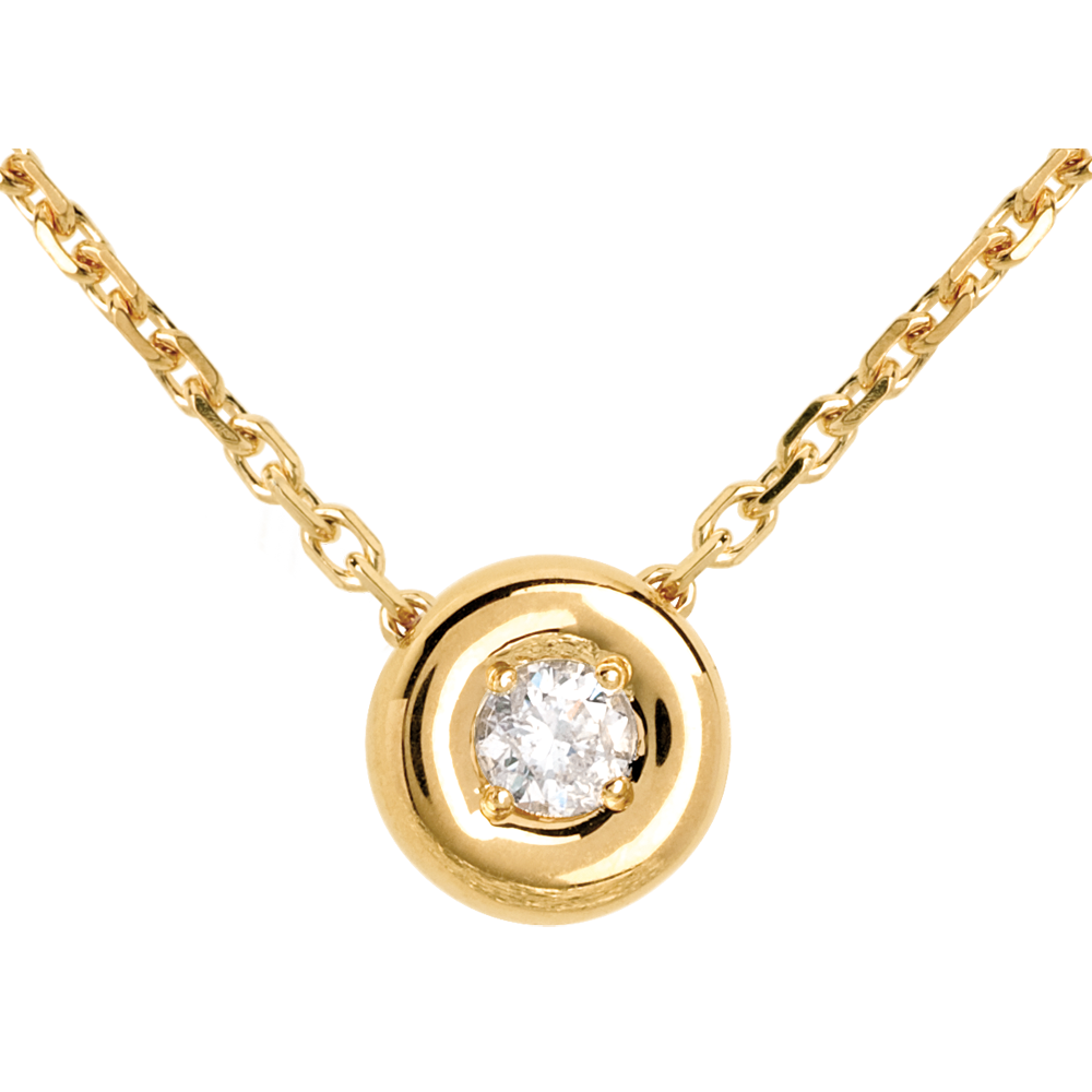 Con cadena de 42 cm con extensión de 3cm en oro de 18 quilates.