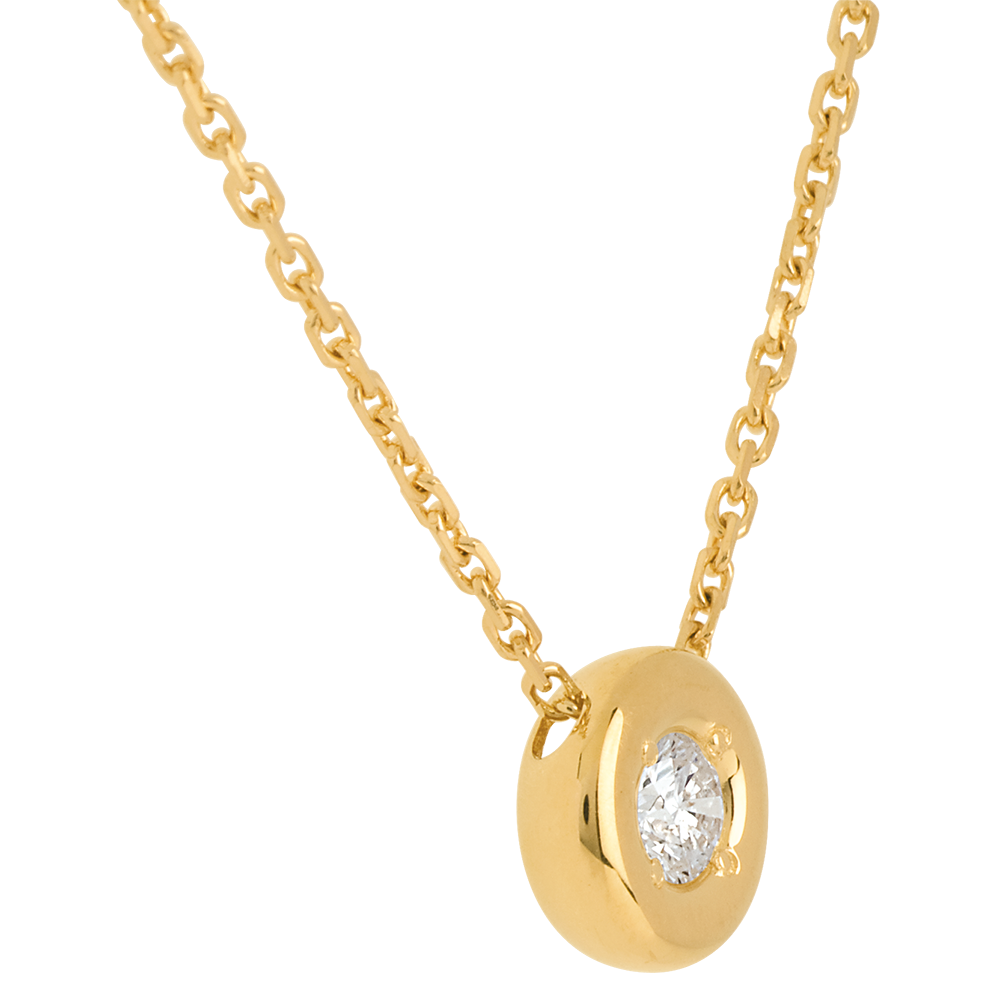 Con cadena de 42 cm con extensión de 3cm en oro de 18 quilates.