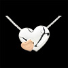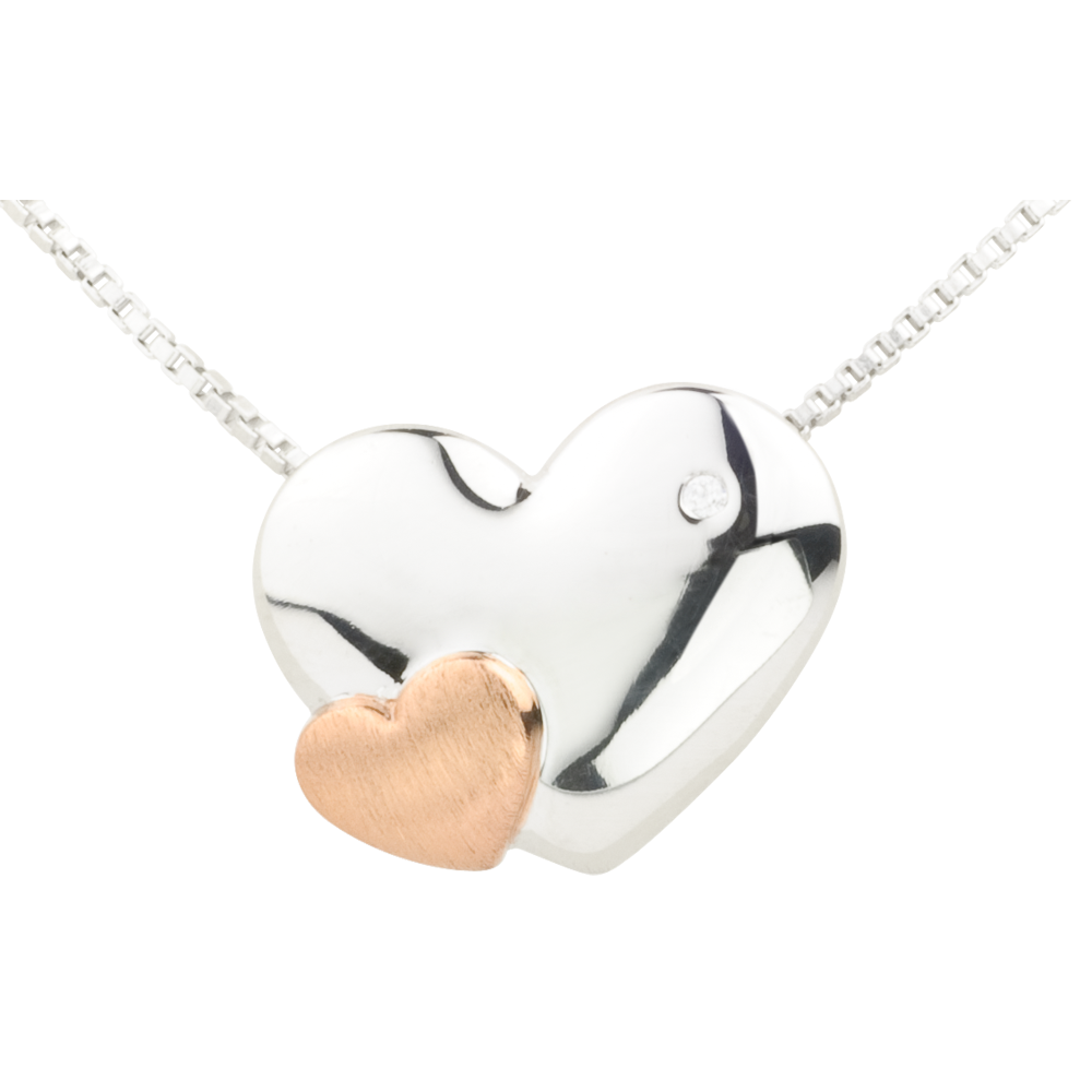 Un pequeño corazón en oro rosa posado sobre un corazón brillante con un diamante.