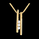Un diapasón de oro amarillo, que mantiene en equilibrio y armonía perfectos tres diamantes, pende de una cadena en oro amarillo también.