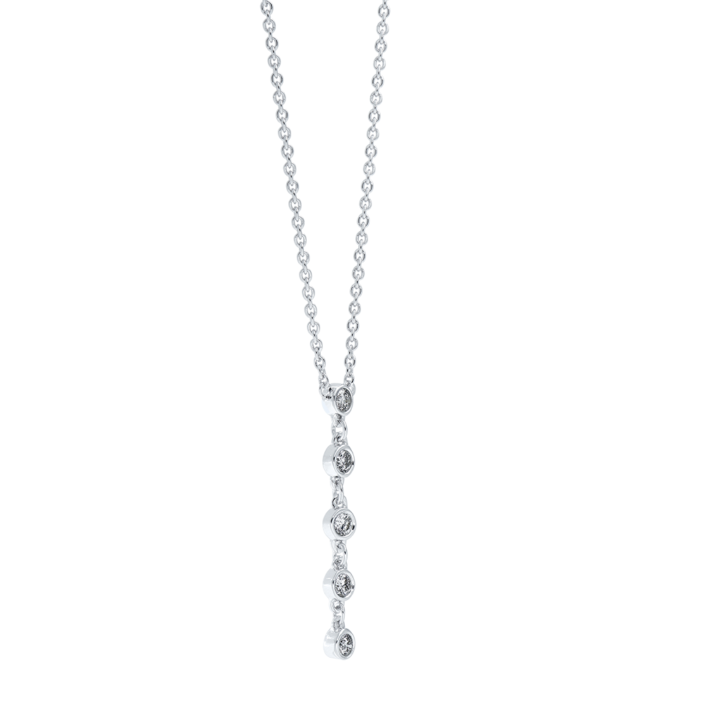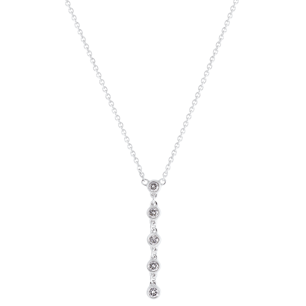 5 gotas de diamante centelleantes en un cordón unido a una delicada cadena. Un icono sobrio y atemporal para un mensaje puro e inequívoco. Con cadena de doble posición 42 cm y 45 cm.