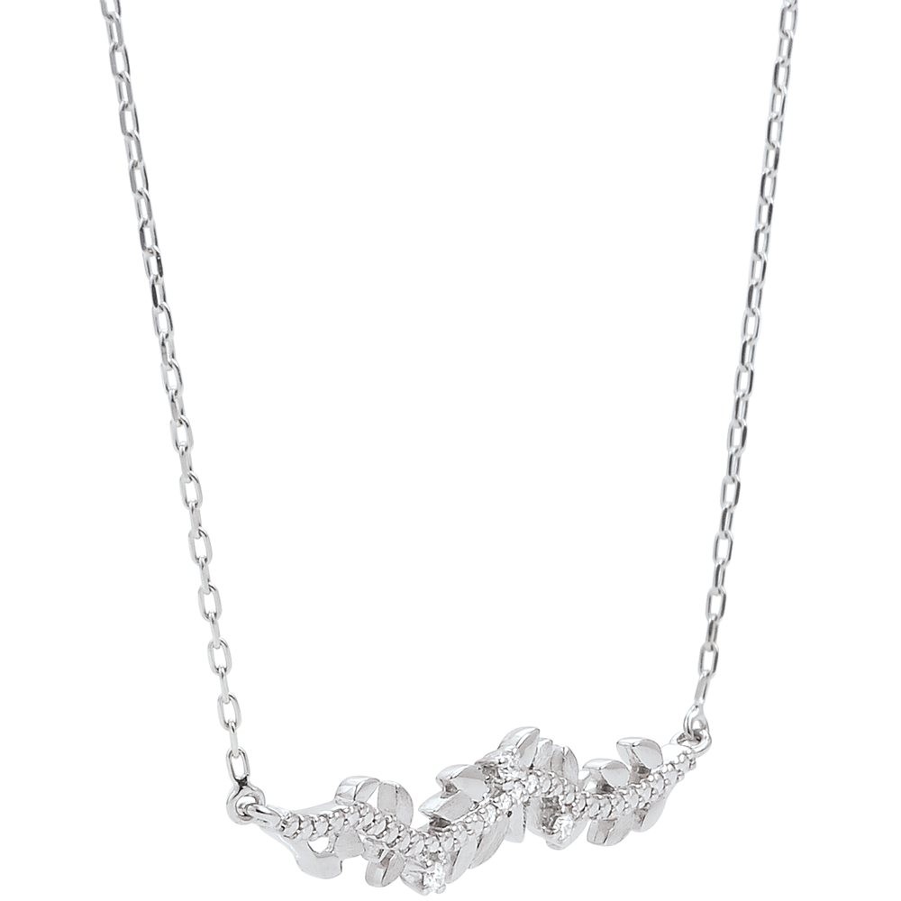 Hojas de oro blanco brillantes y hojas de oro de acabado rugoso hechas a mano se alternan para crear un collar romántico con 7 diamantes.