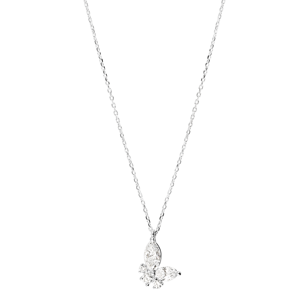 PASEO SOñADO N.º 13Collar Mariposa - Oro blanco 9 quilates - Diamante de laboratorio ID : 7429