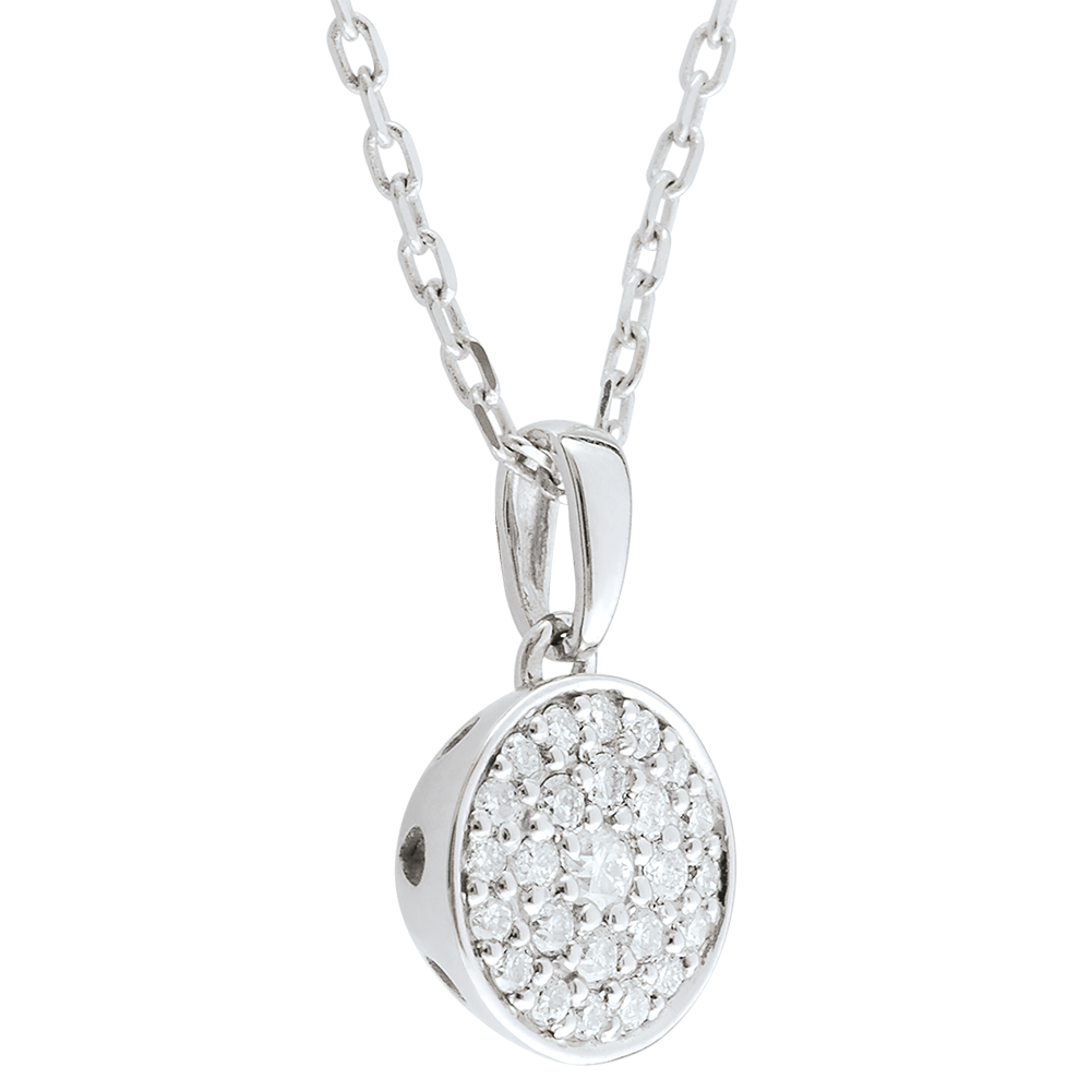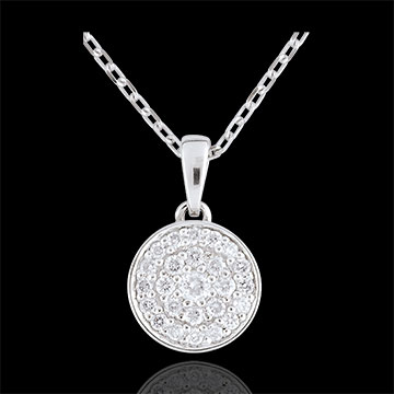 Una constelación de diamantes se concentra en un colgante que libera todo su esplendor.