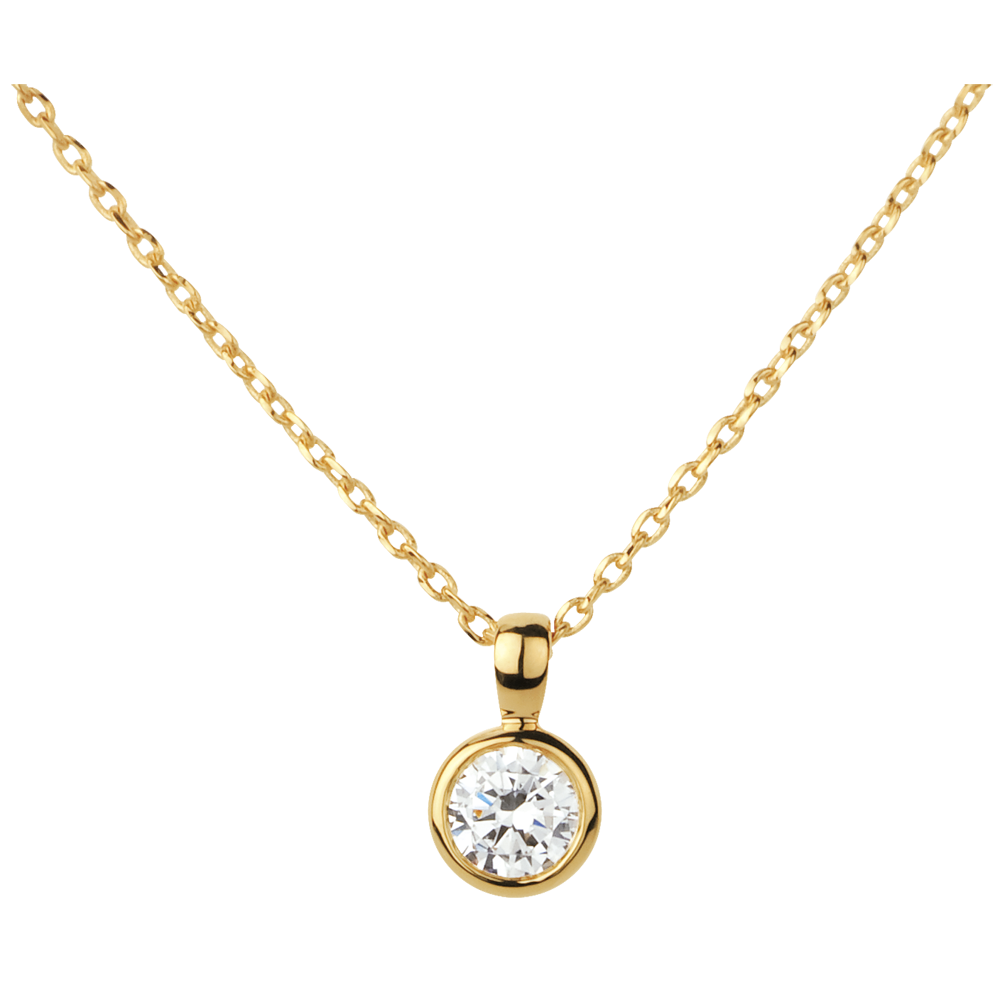 Con cadena de 42 cm con extensión de 3cm en oro de 18 quilates.