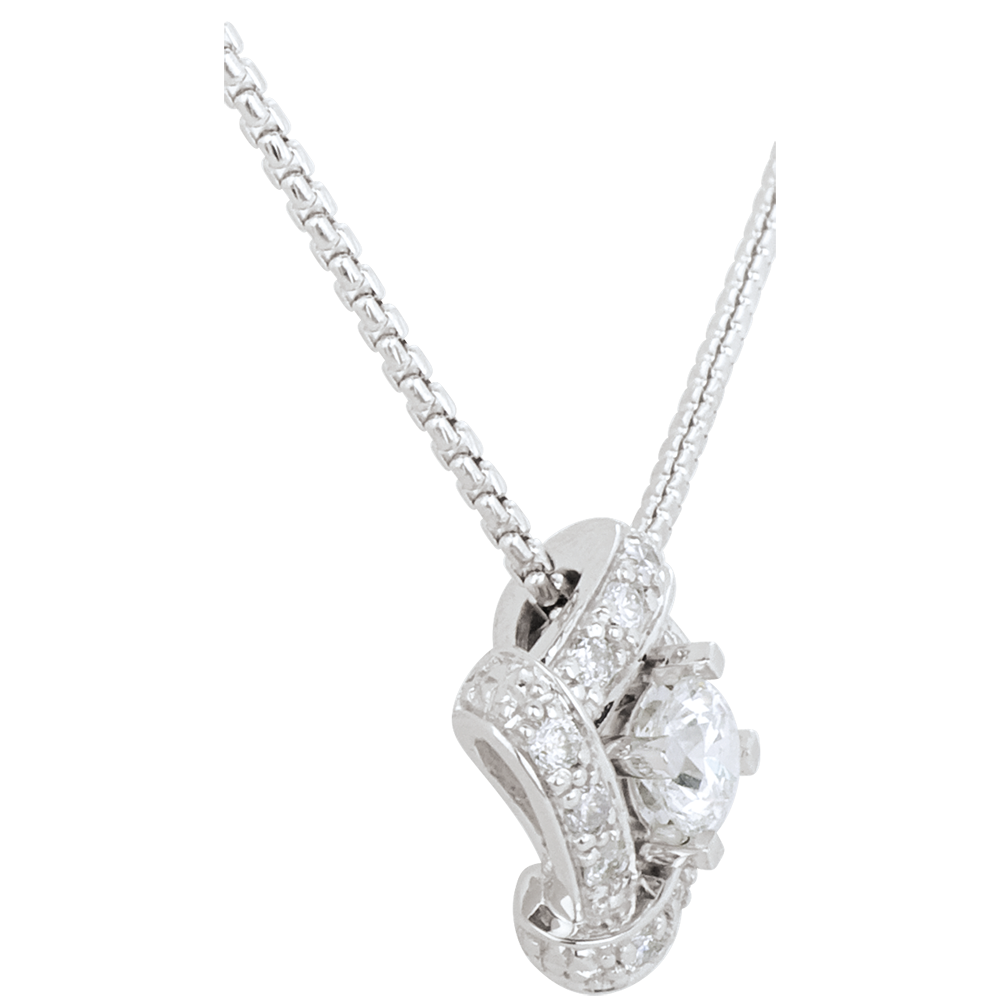 Un diamante solitario reposa sobre un nido de Oro Blanco con diamantes talla brillante.
