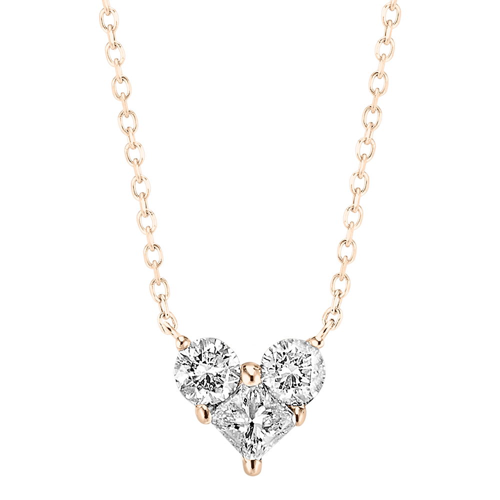 Un corazón cubierto con 3 diamantes delicadamente colocados en un collar de oro rosa. Este icono de la joyería es recreado por Edenly con poesía para una declaración de amor más intensa. ¡Vaya, encantadora!