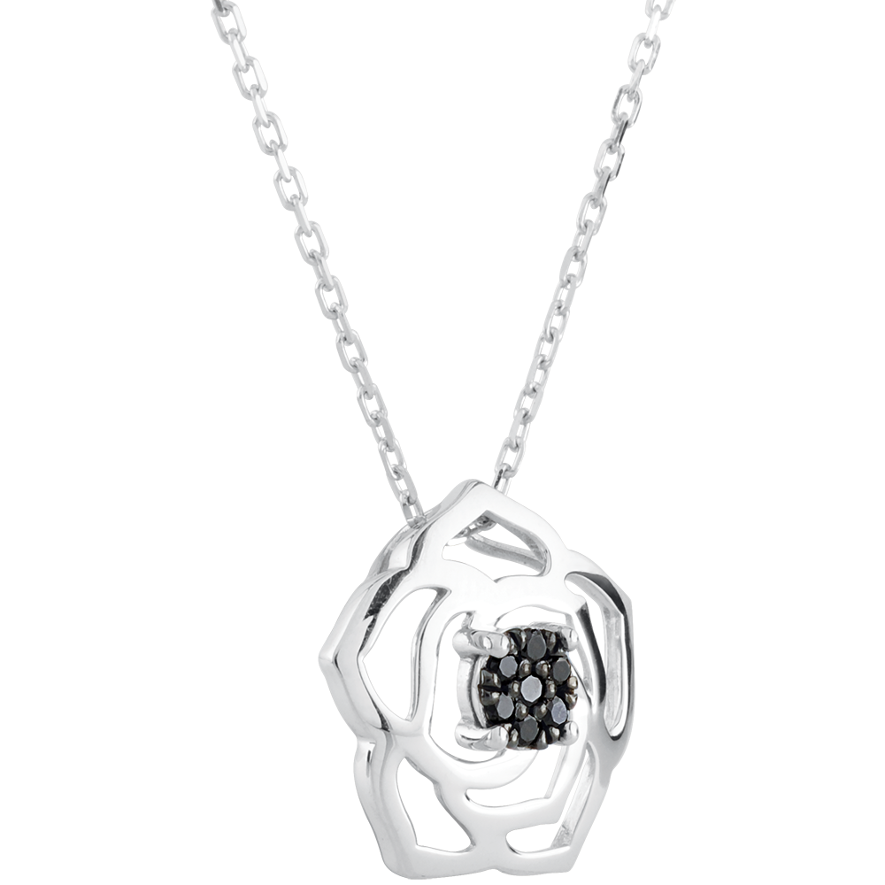 Una rosa arabesca protege un corazón de preciosos diamantes negros.