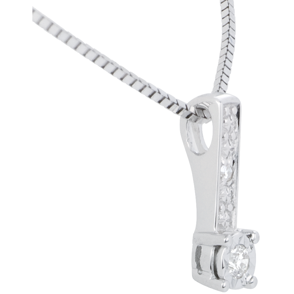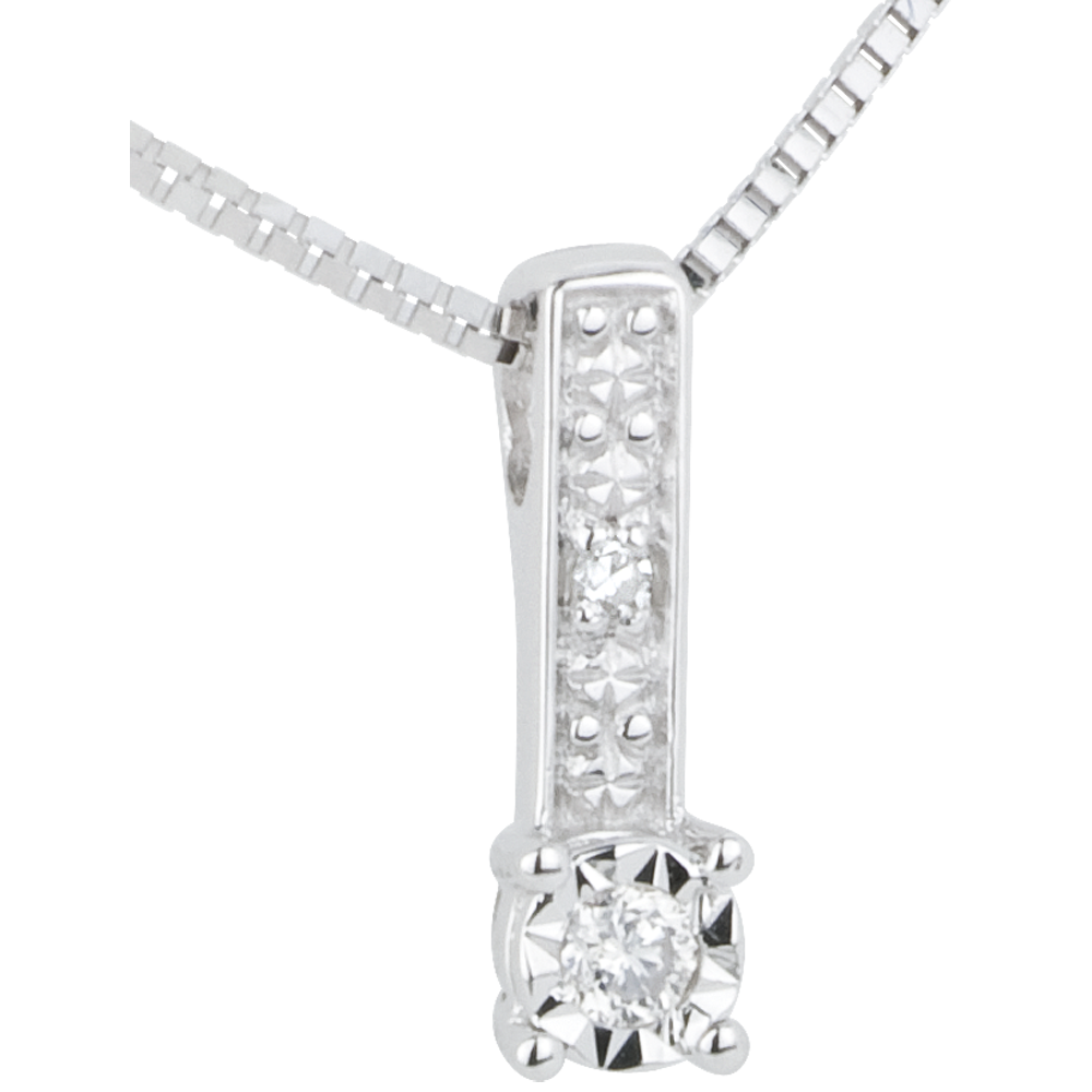 Con dos diamantes blancos de calidad HSI y un peso total de 0,02 quilates, este collar ofrece una luminosidad delicada sobre una cadena de oro blanco 18K.