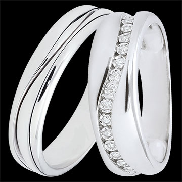 DUO DE ALIANZAS AMOUR – ORO BLANCO Y DIAMANTES – 18 QUILATES