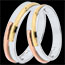 Una venda de oro blanco es flejada por una cinta de oro amarillo y rosa. Una alianza tres oro moderno y único.