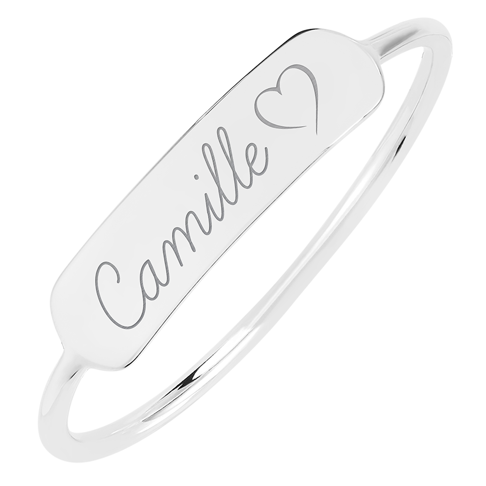 LOVELY YOURS N.º 24Anillo medallón rectangular grabado - Oro blanco 9 quilates ID : 4843