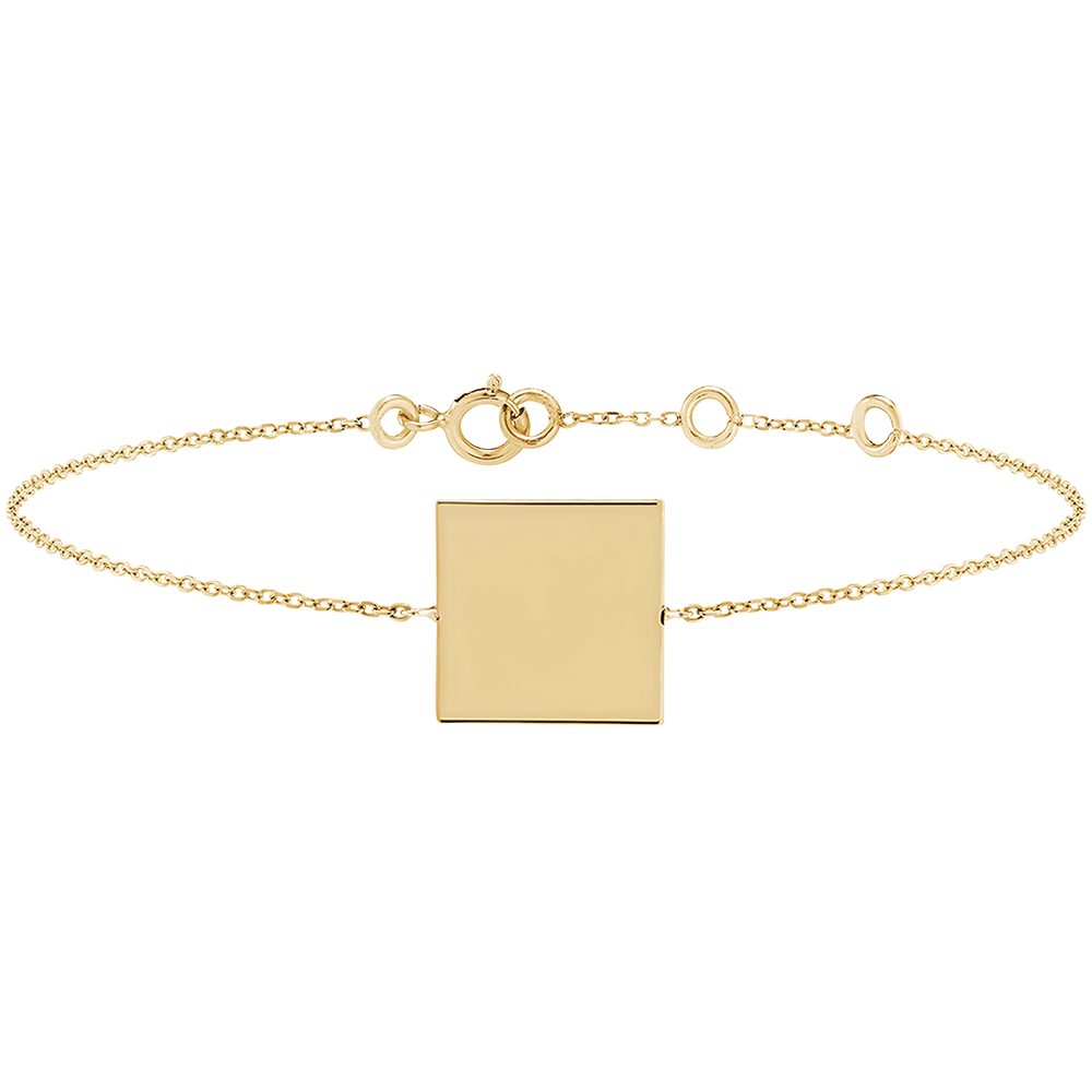 Brazalete de medalla cuadrada para grabar - Oro amarillo 18 quilates