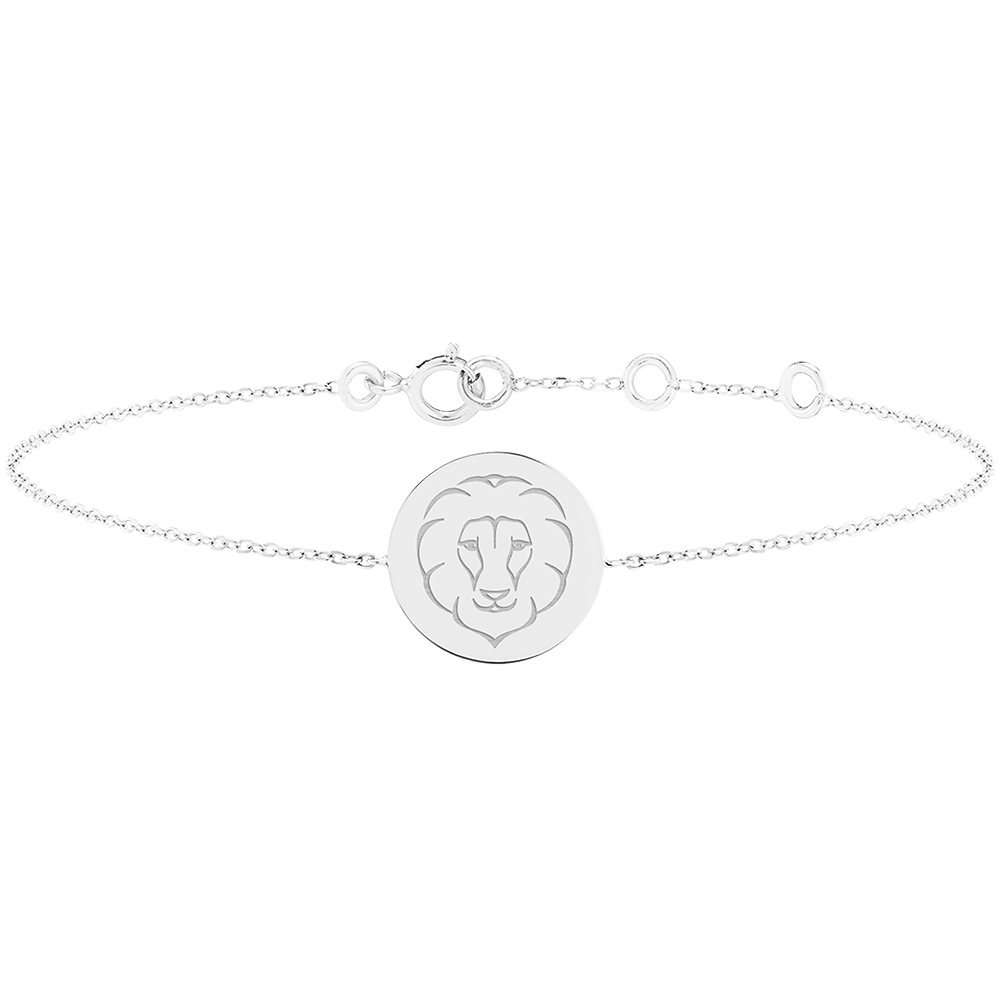 ZODIAC YOURS N.º 2Brazalete con medalla grabada redonda - Leo - Oro blanco 9 quilates ID : 4898