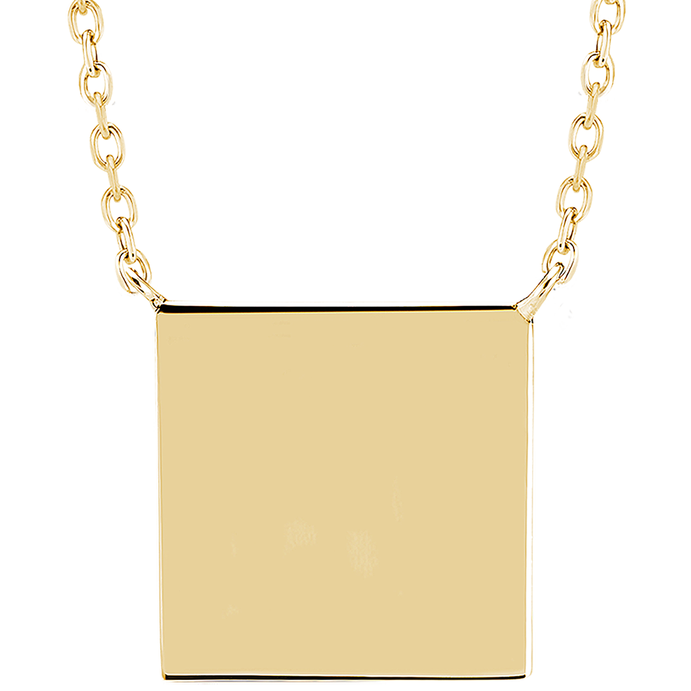 Collar de medalla cuadrada para grabar - Oro amarillo 9 quilates